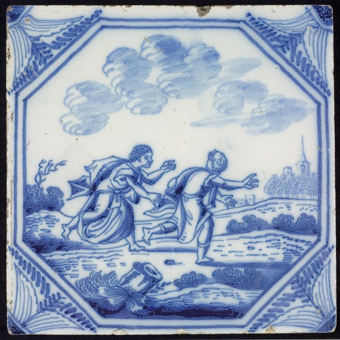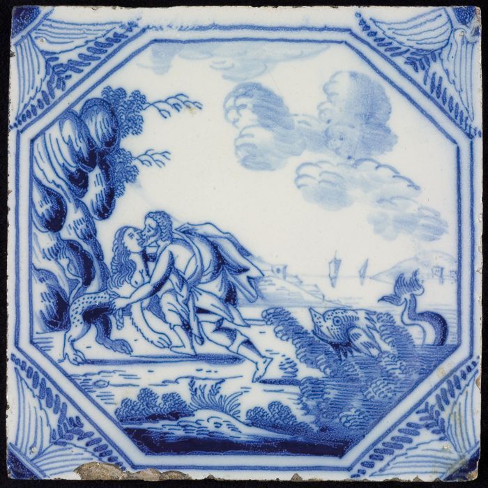 Tegel met mythologisch tafereel met Dryope, in achtk...