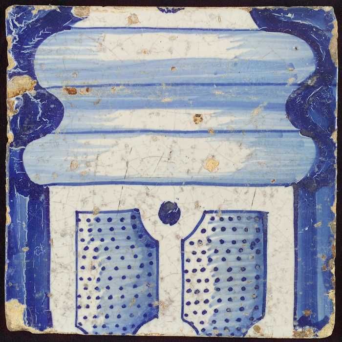 Tegel van schoorsteenpilaster, in blauw op wit, deel...