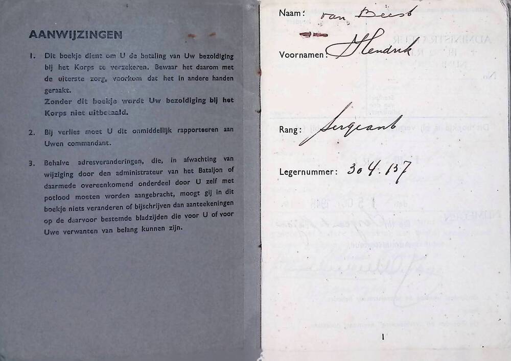 Betalingsboekje Koninklijke Landmacht