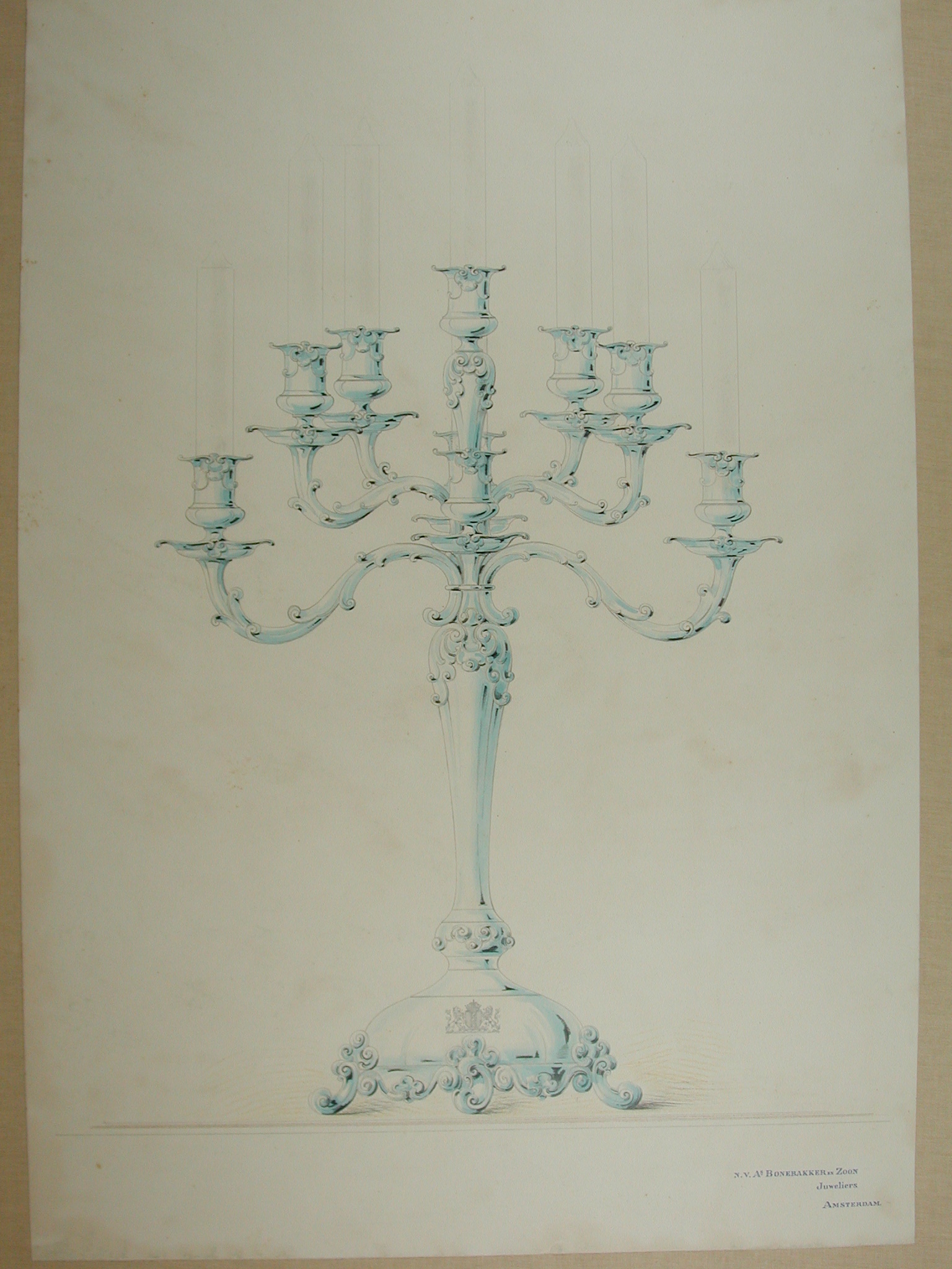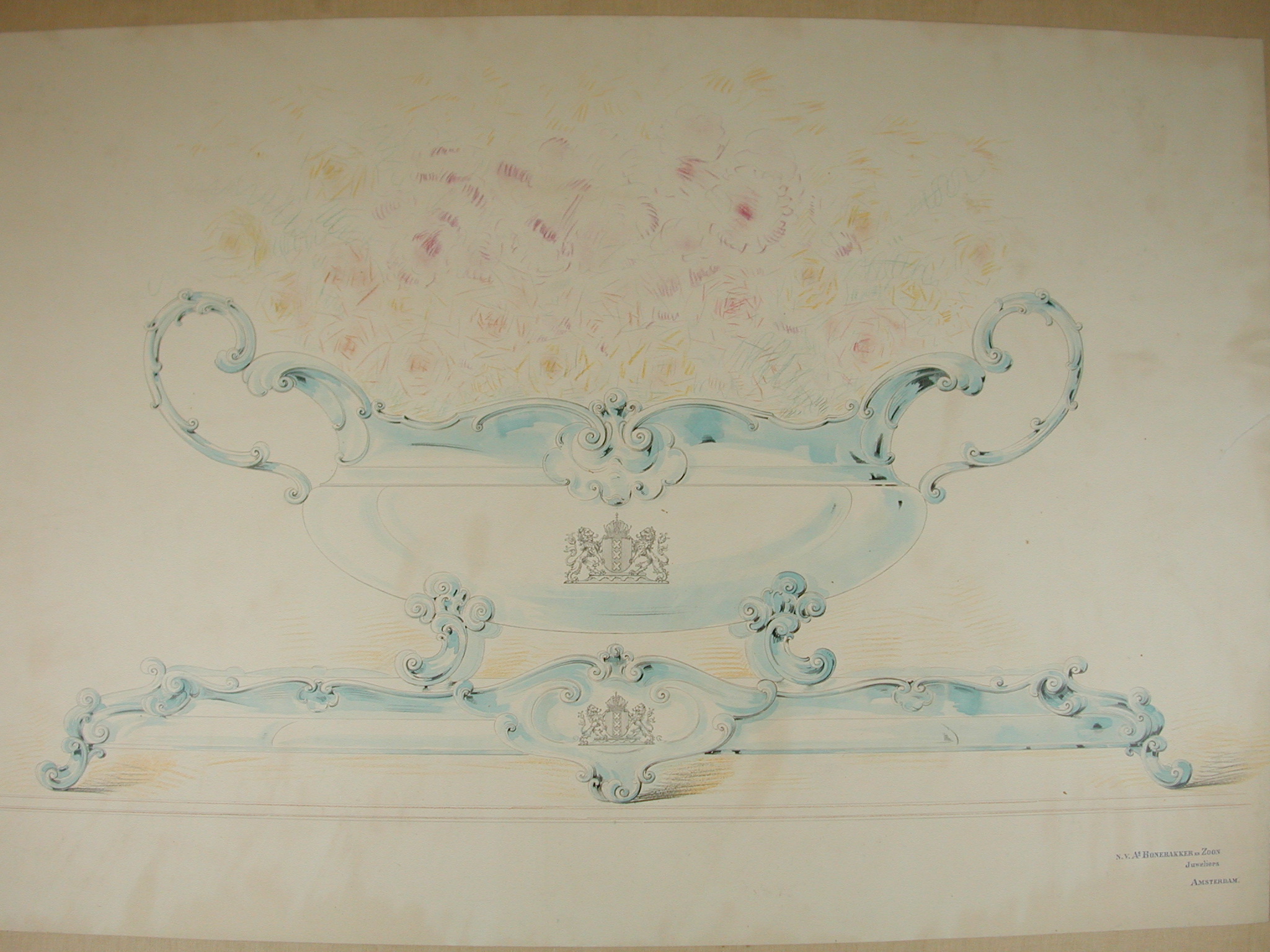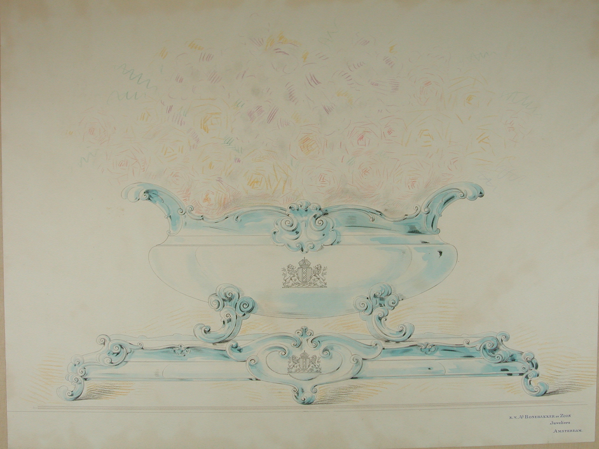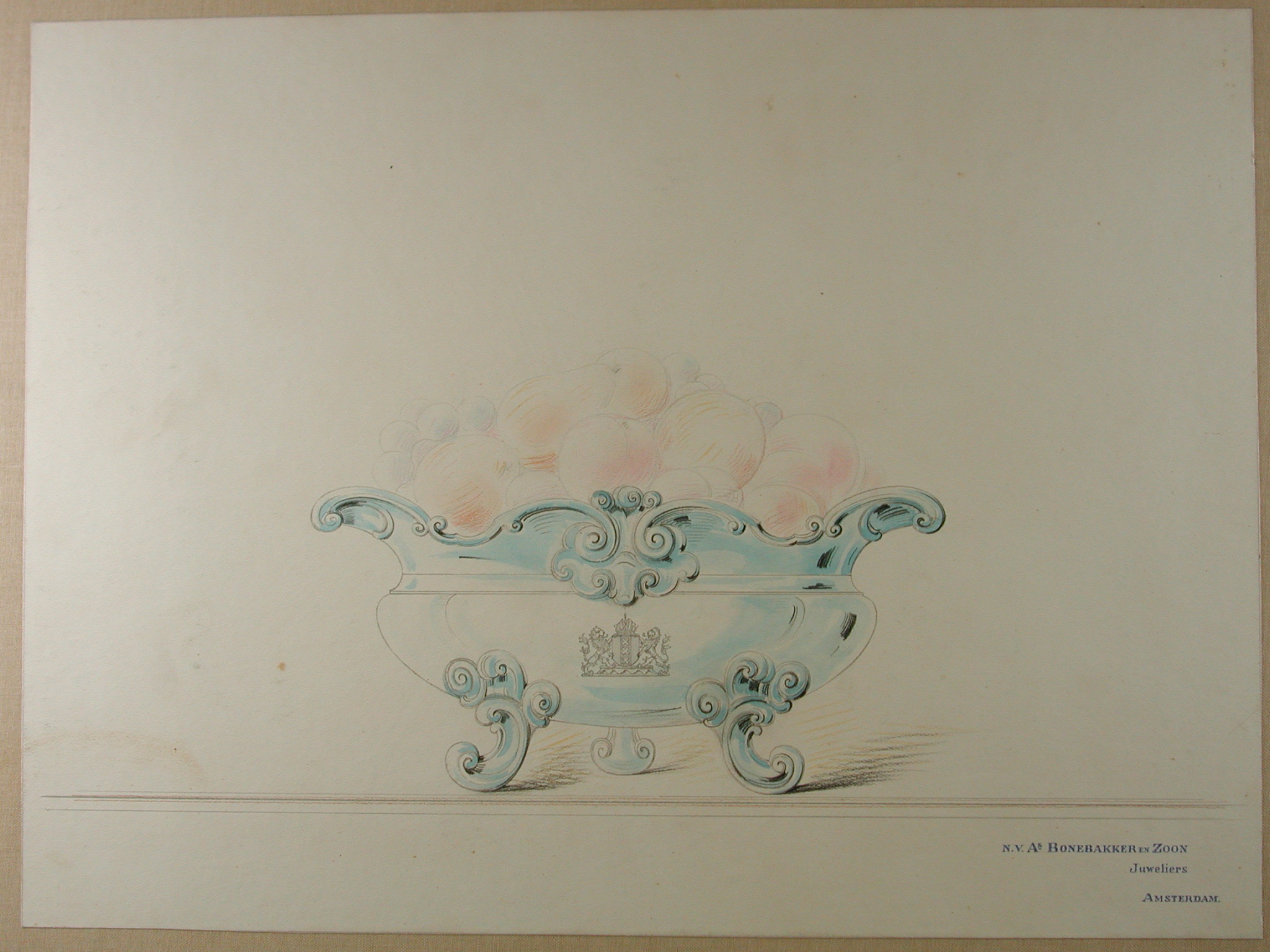 Ontwerptekeningen voor zilveren tafelgoed, in foedra...