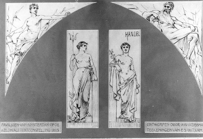 Ontwerpschetsen van de zijstukken en zwikvullingen v...