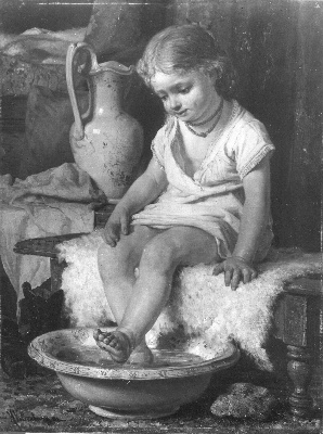 Klein meisje wast voeten