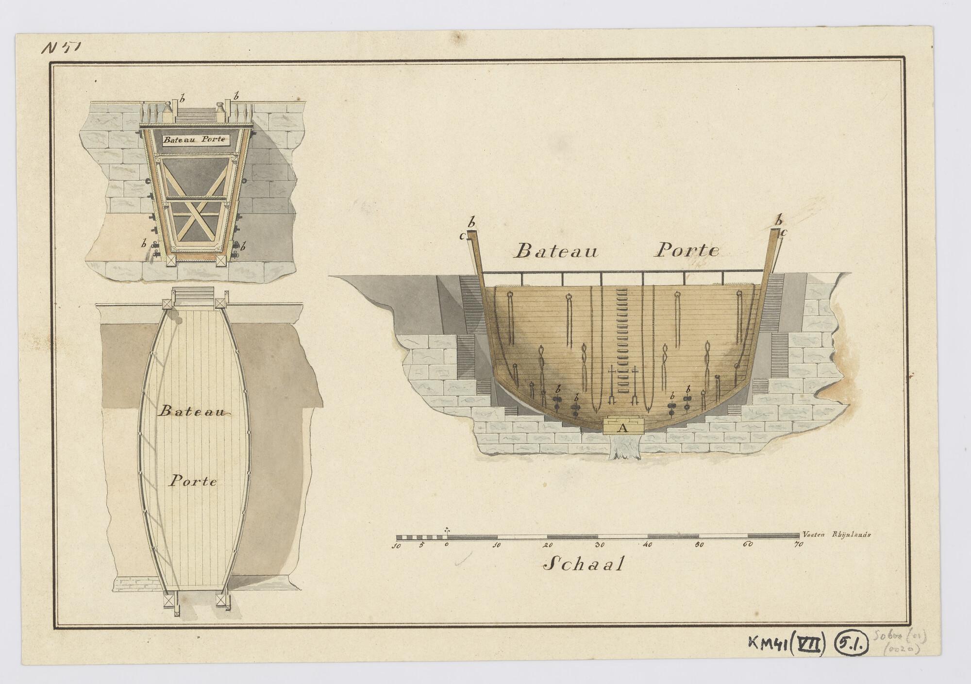 Doorsneden en bovenaanzicht van een schipdeur (batea...