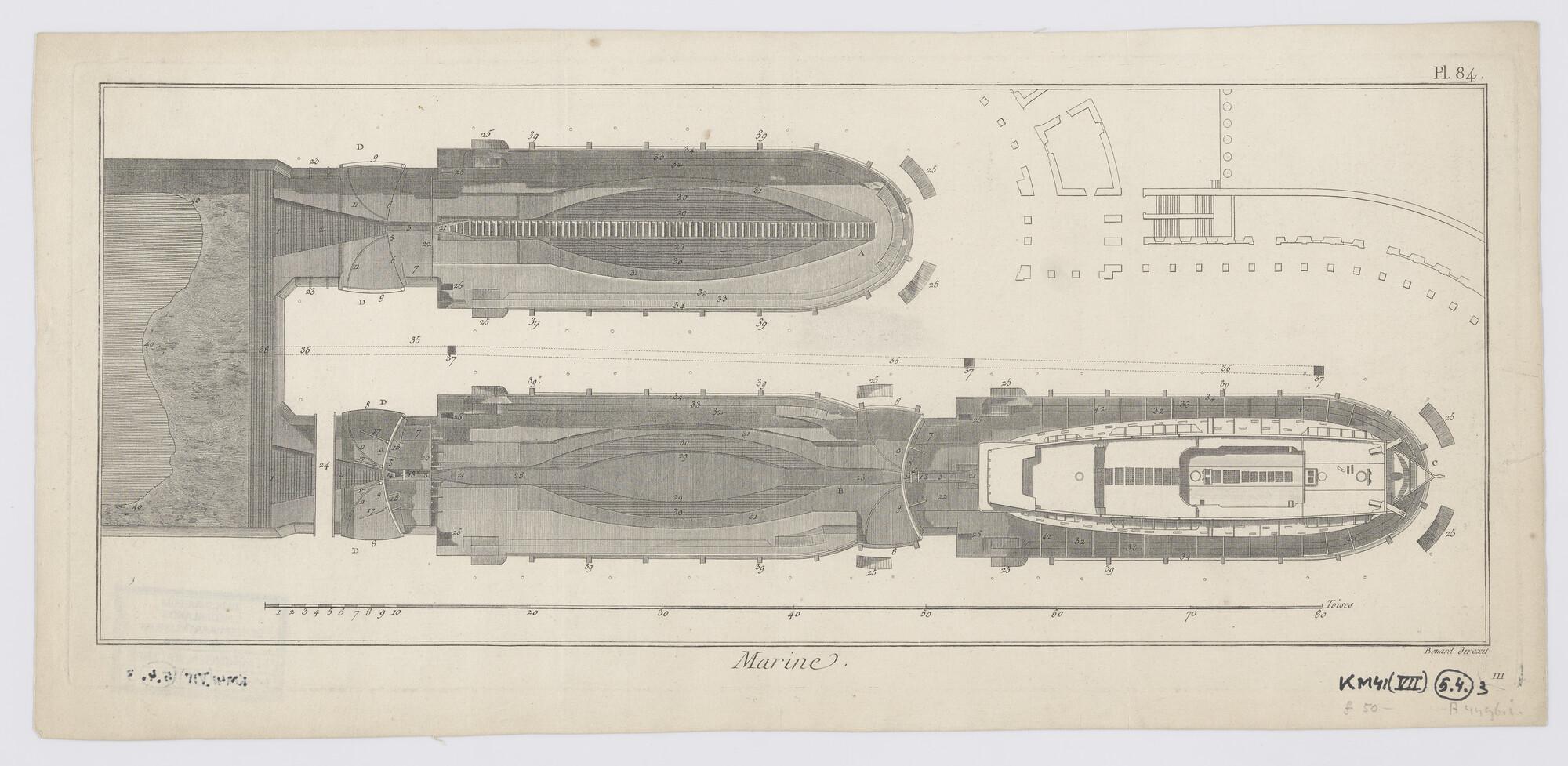 Aanzichten van een stenen scheespbouwhelling met ove...