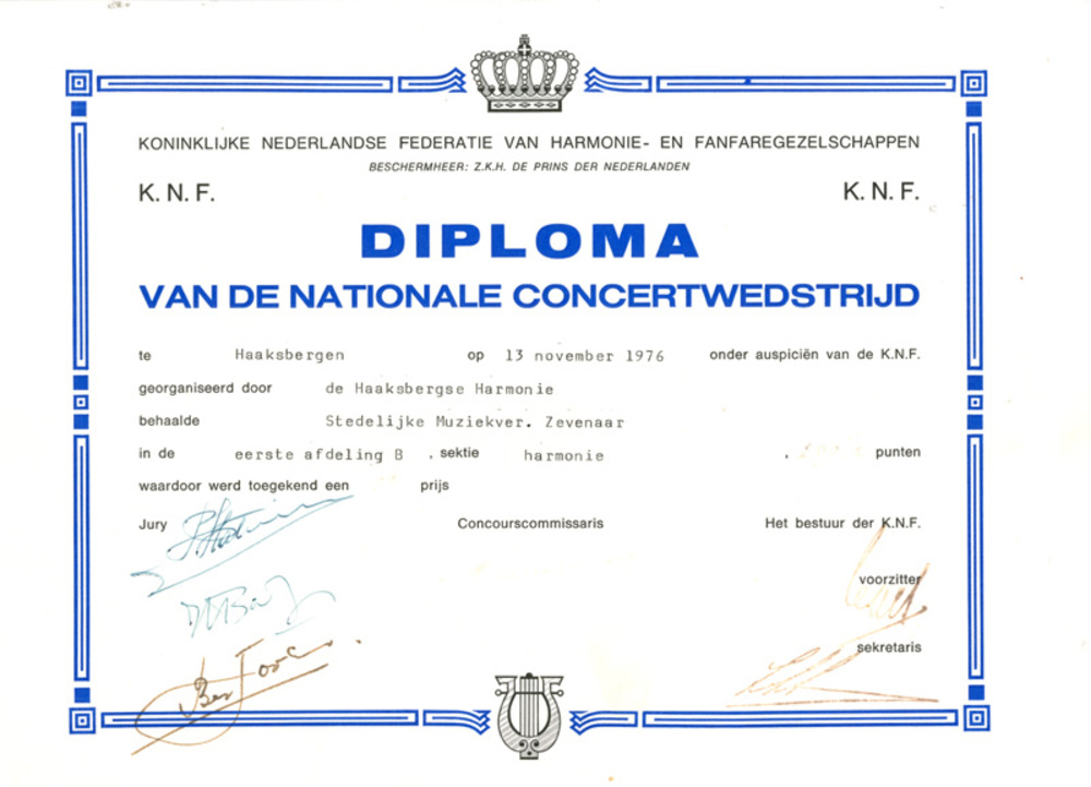 Diploma van de Nationale Concertwedstrijd in Haaksbe...