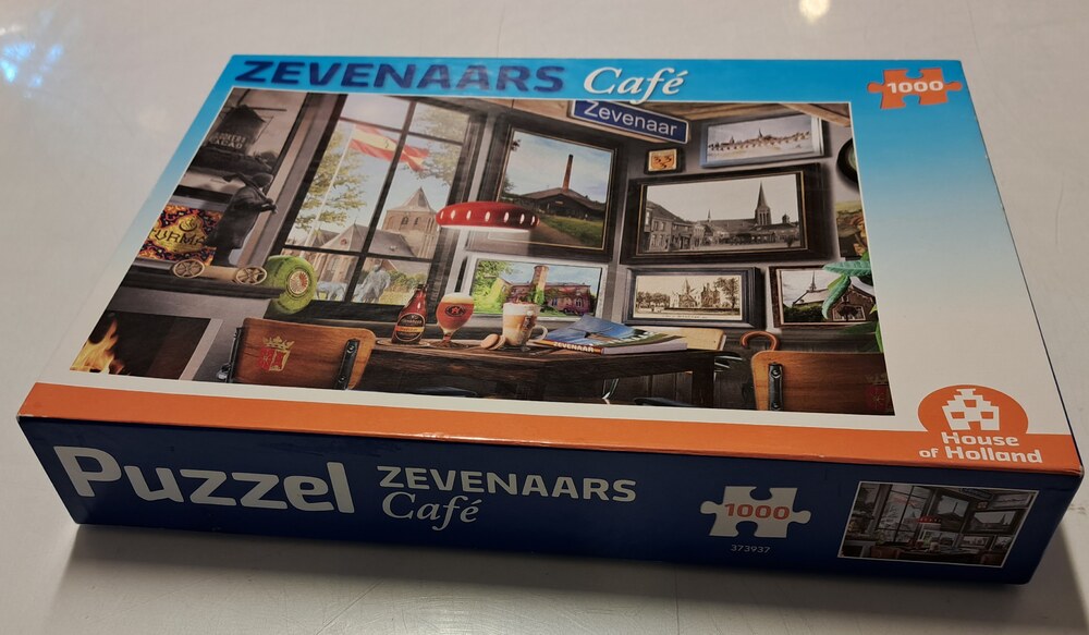 Legpuzzel van karton met de titel 'Zevenaars Café' d...