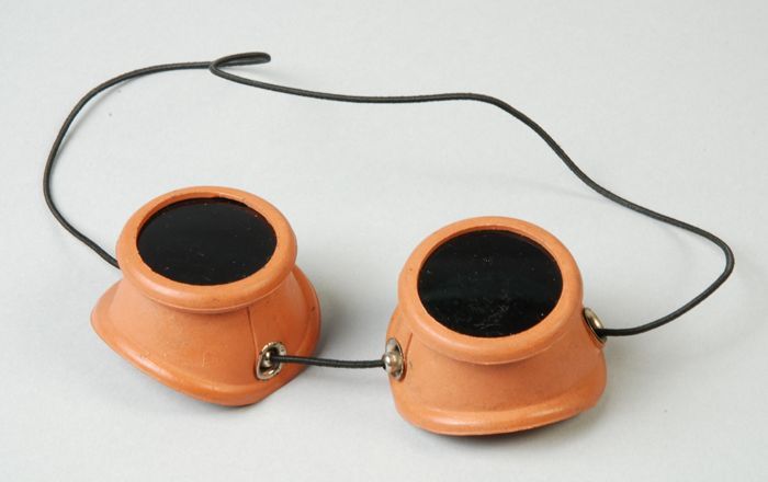 Hoogtezonbril bestaand uit twee zwarte kunststof dop...