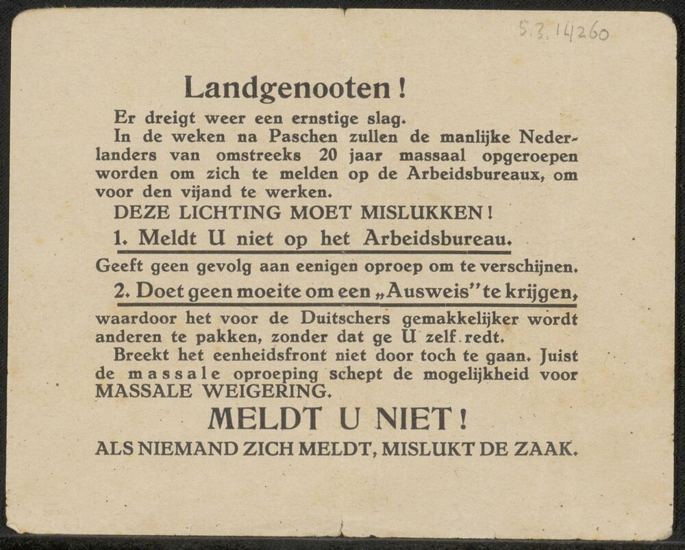 Landgenooten! Er dreigt weer een ernstige slag. In d...