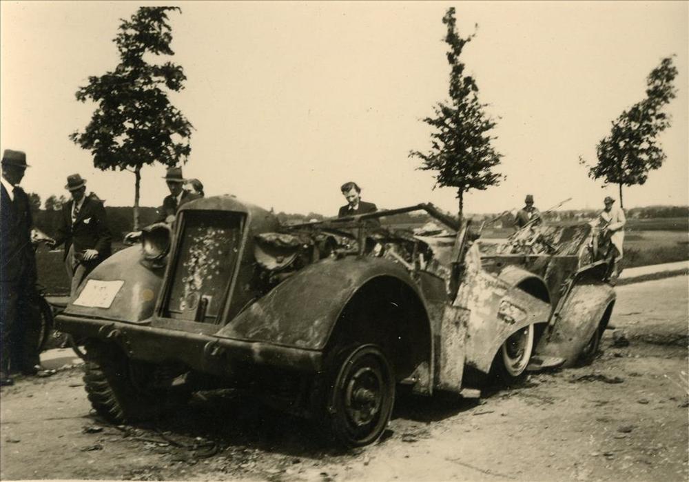 Een door een explosief getroffen personenauto