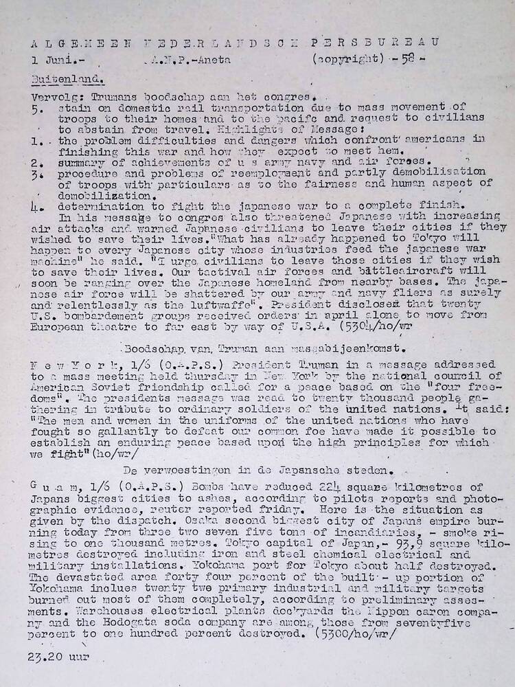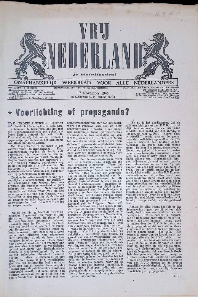 Vrij Nederland, gedrukt te Londen, 17 november 1945