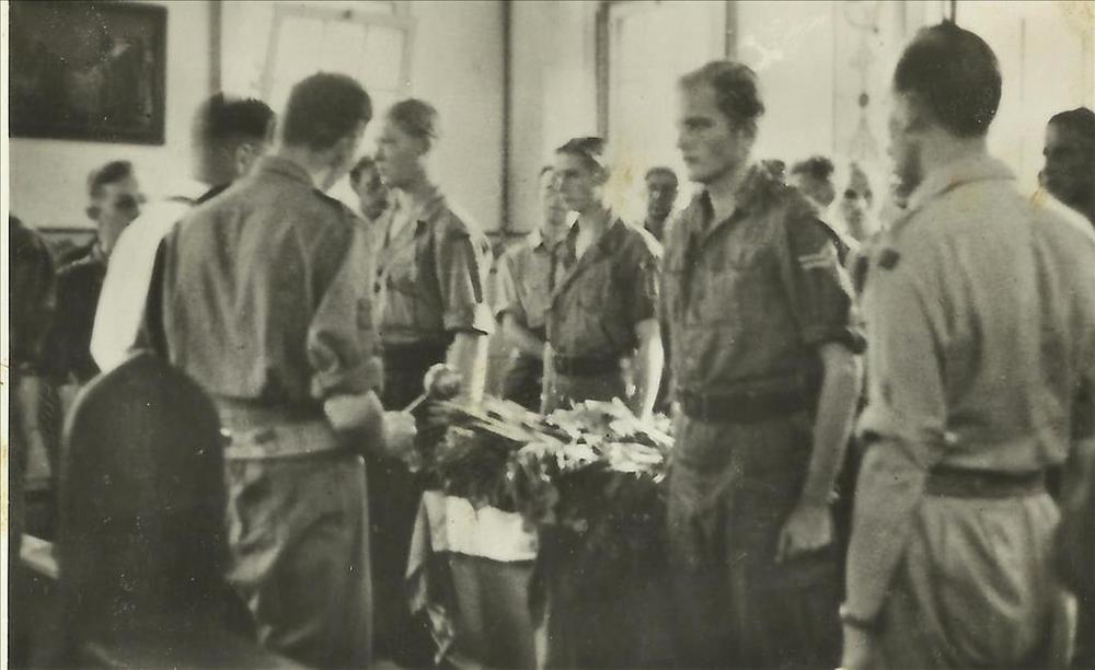 Indië na WO 2: begrafenis, kist, militair, kerk, gee...