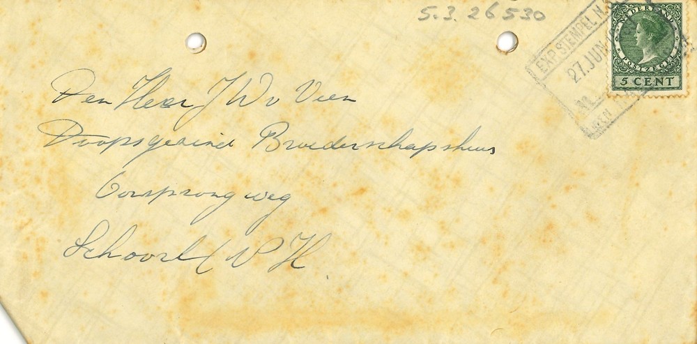 brief met enveloppe - aan dhr van Veen