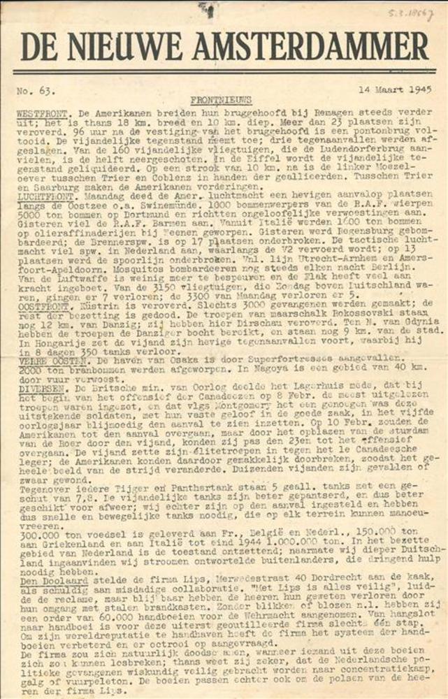De Nieuwe Amsterdammer , 14 Maart 1945