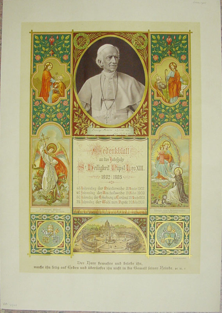Prent van paus Leo XIII van papier steendruk M.Kuhle...