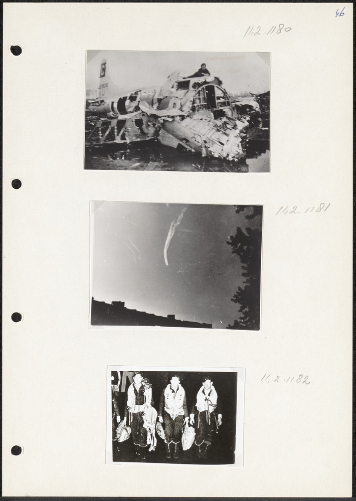 Foto drie vliegers in vliegerkledij bij romp Britse ...