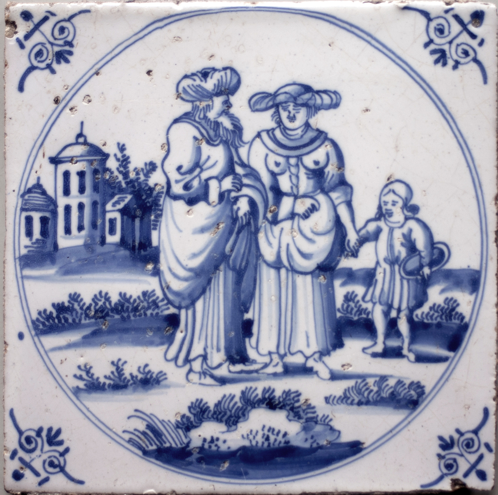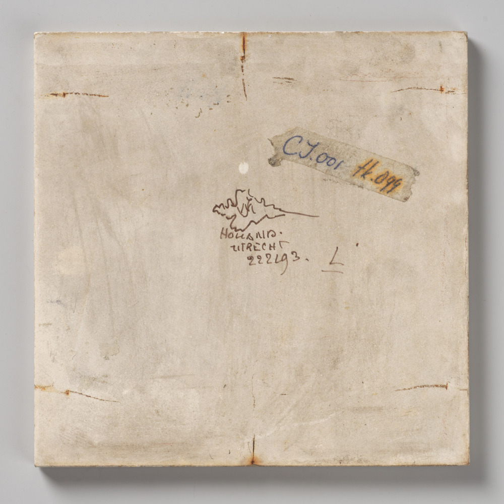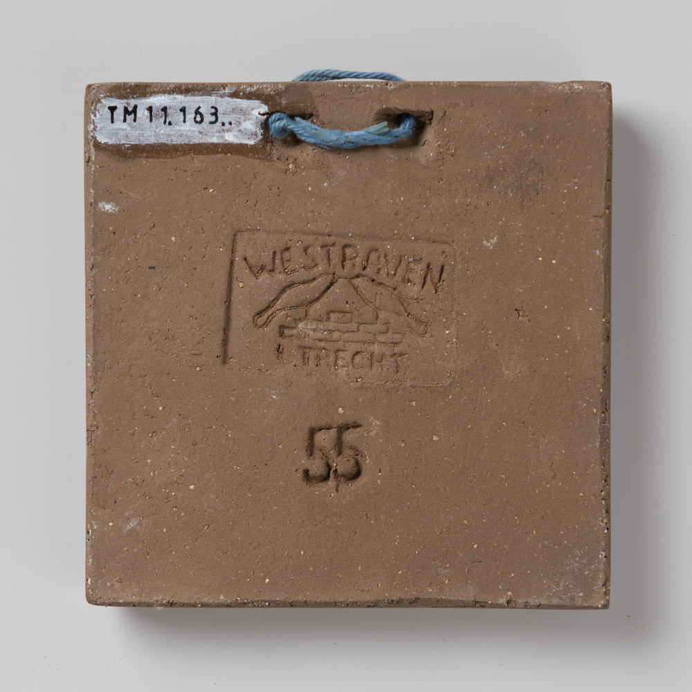 tegel van keramiek met tinglazuur, voorstellende: De...