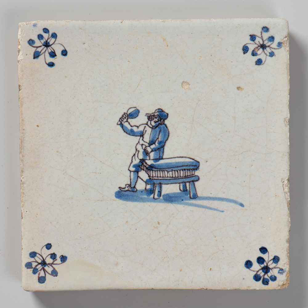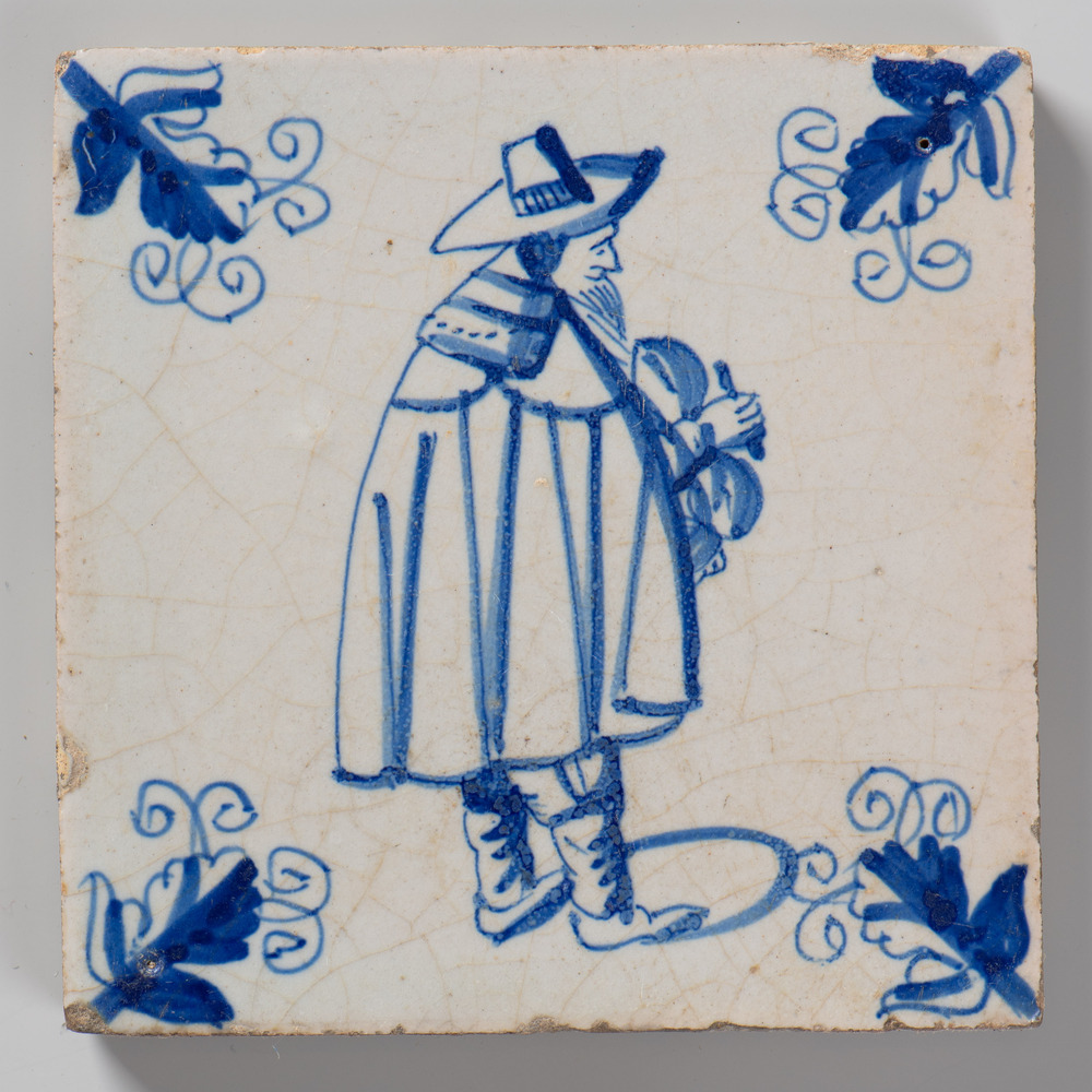 tegel van aardewerk met tinglazuur, voorstellende: m...