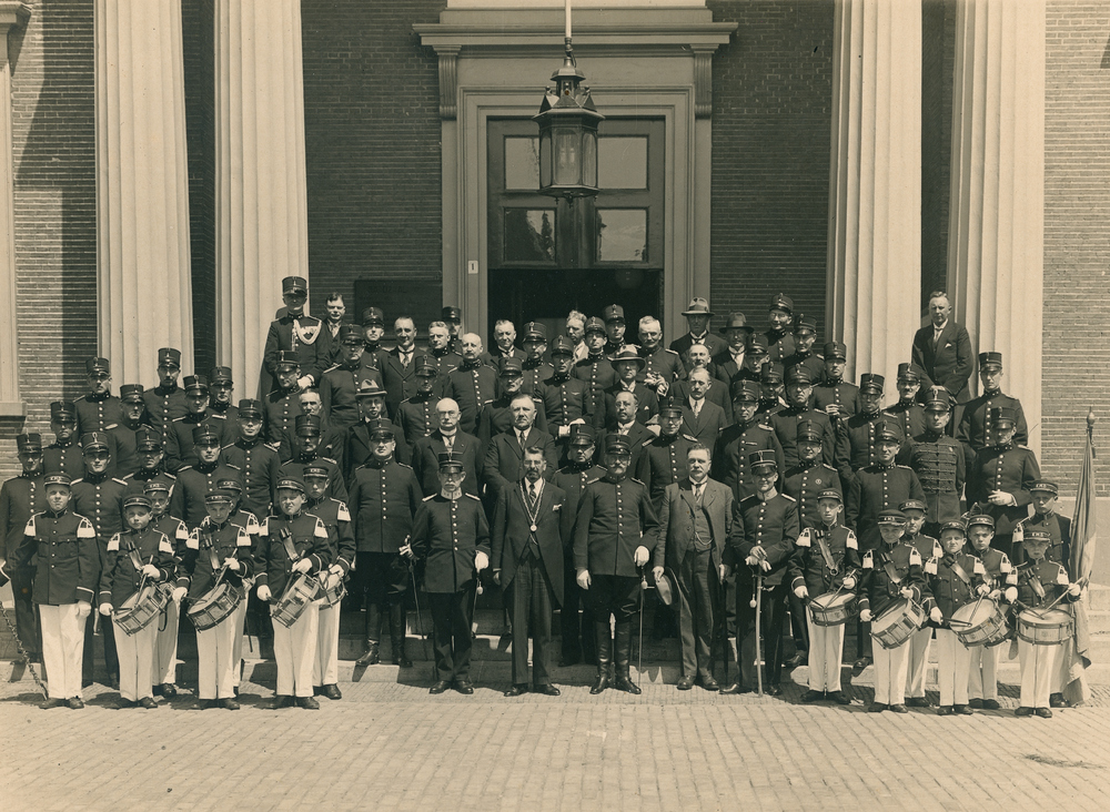 Groepsportret van een ontvangst van officieren van h...