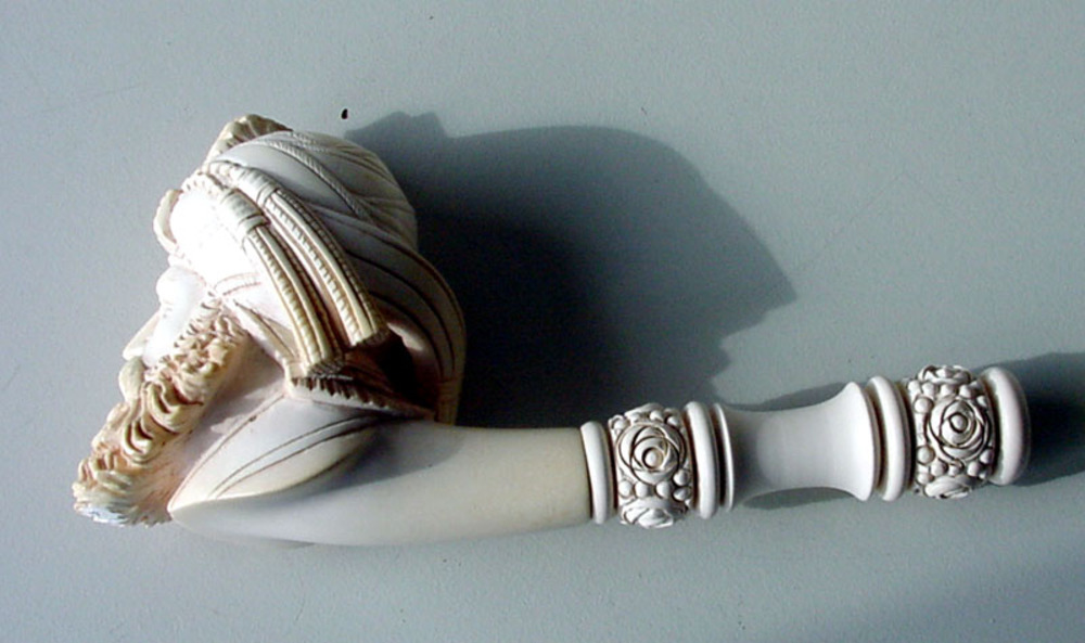 Pijp in een etui van meerschuim leer textiel en plas...