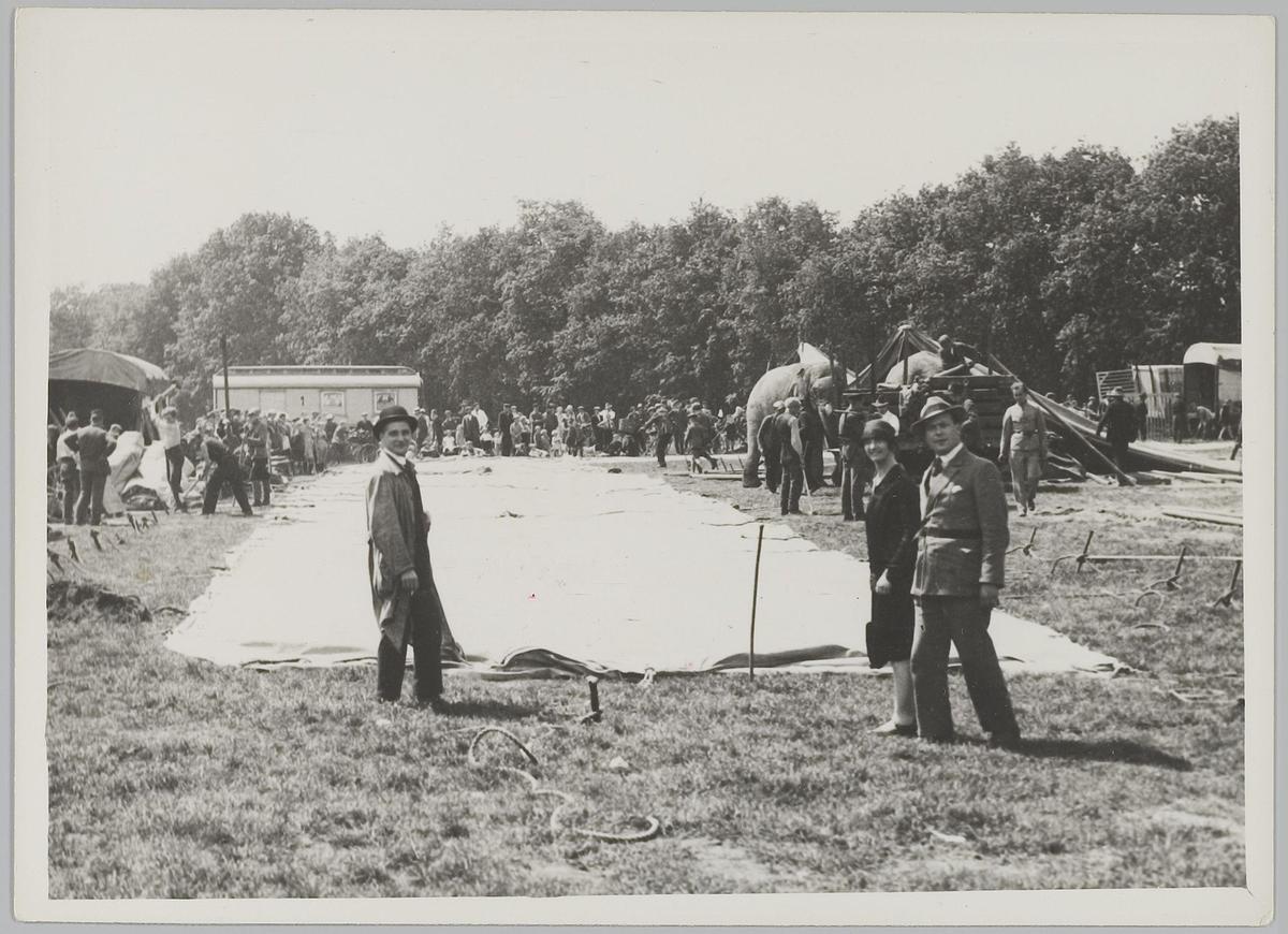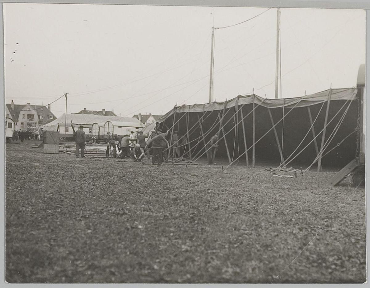 Opbouw van de tent van Circus Strassburger, 1928