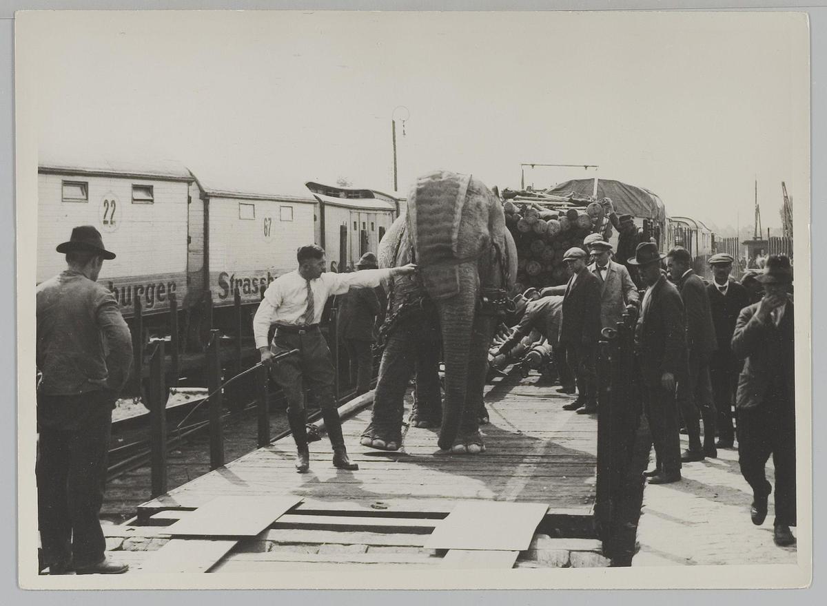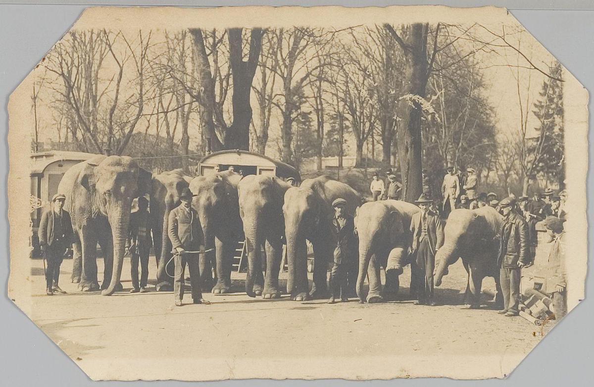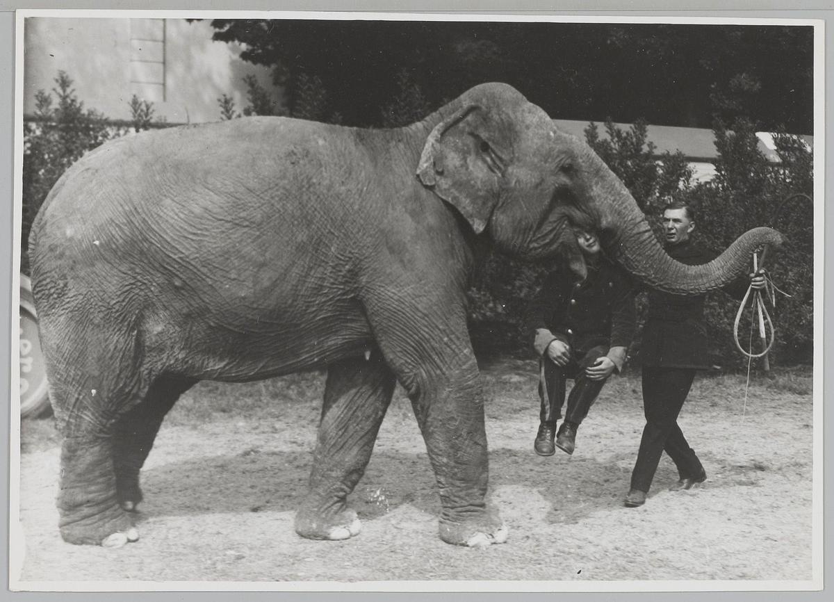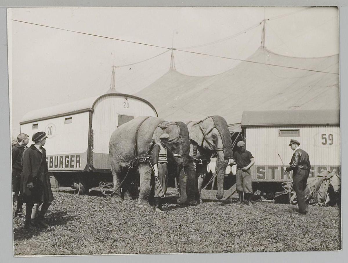 Dresseurs met olifanten van Circus Strassburger 1928