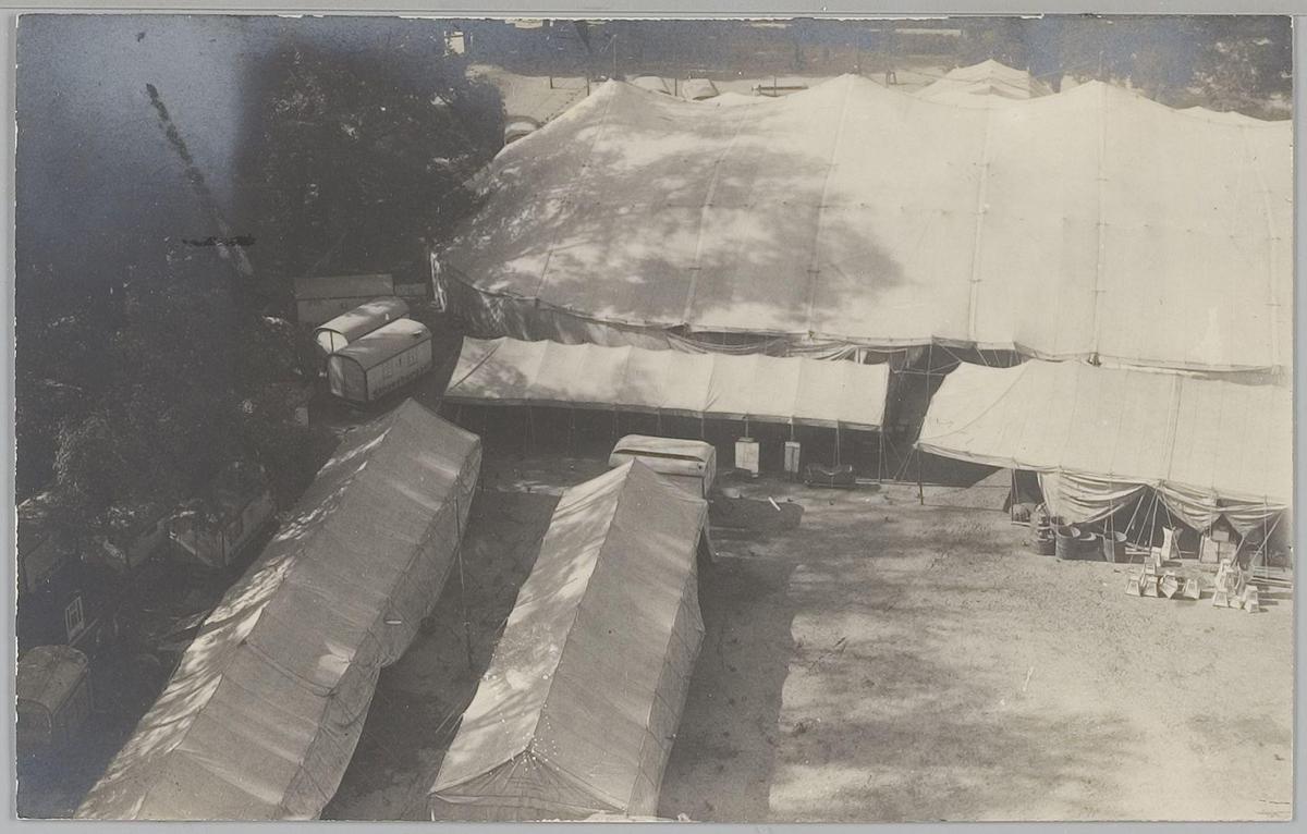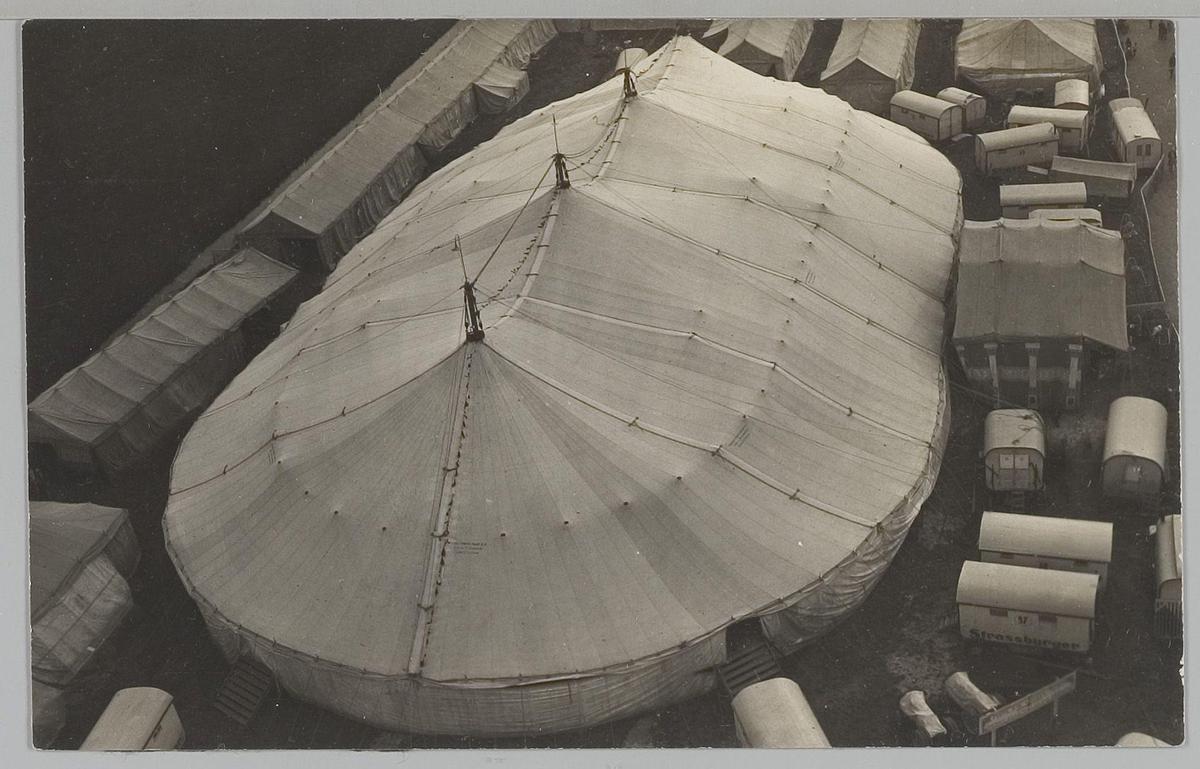 Luchtfoto van tenten van Circus Strassburger, 1928