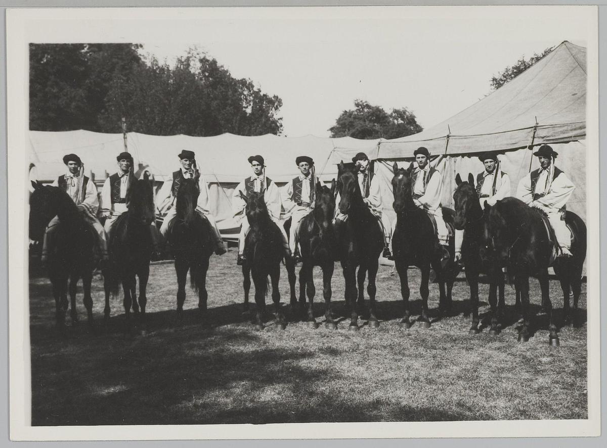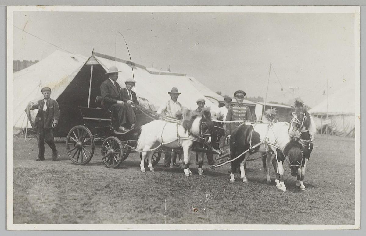 Dresseurs met paarden voor de tent van Circus Strass...