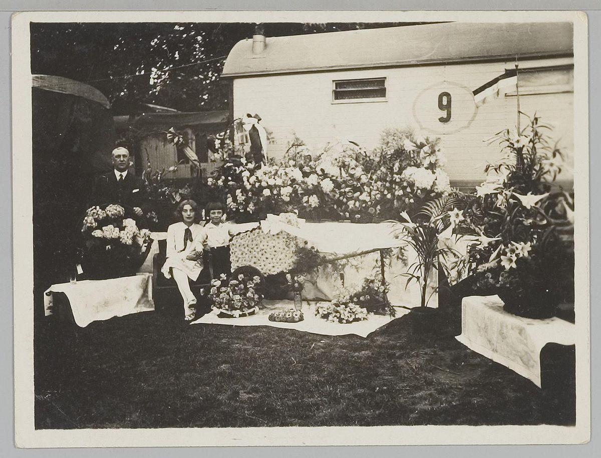 Mensen bij een circuswagen van Strassburger