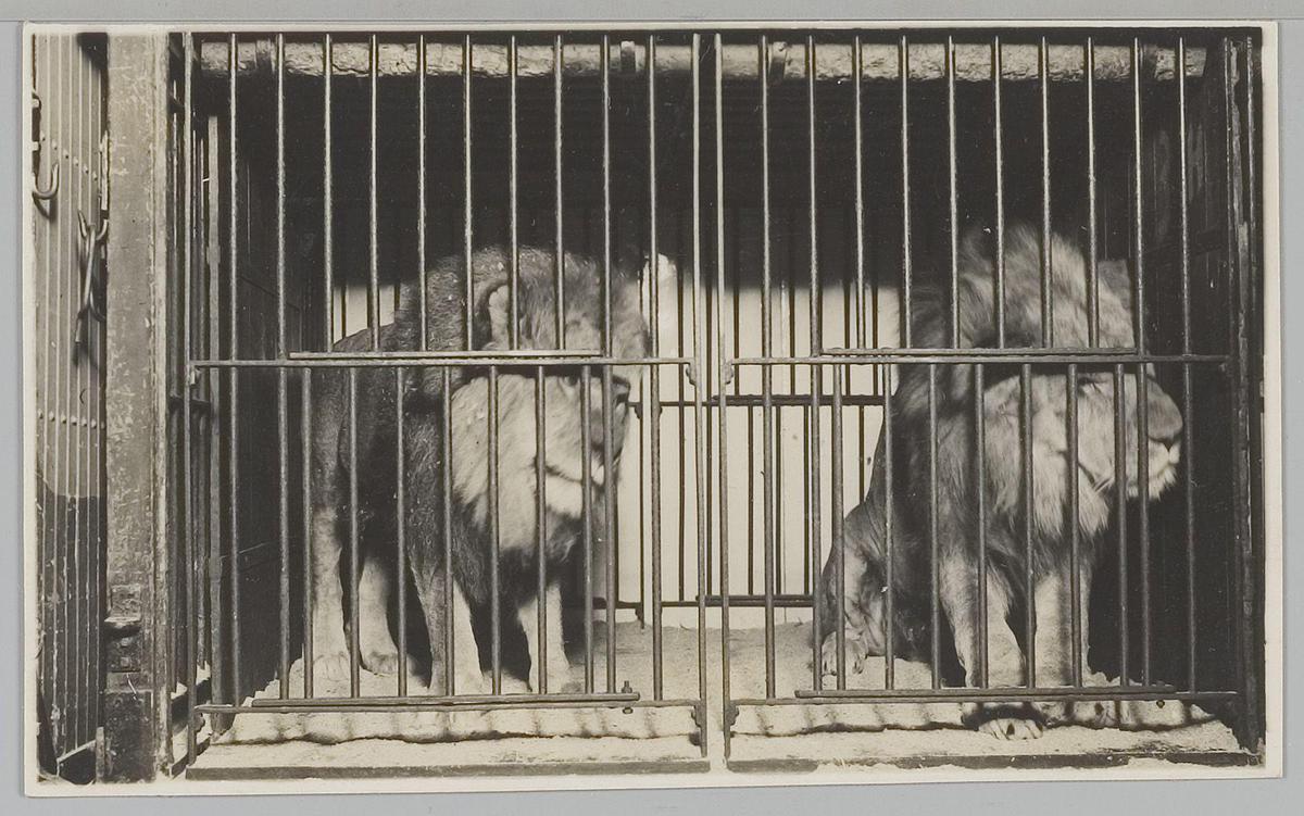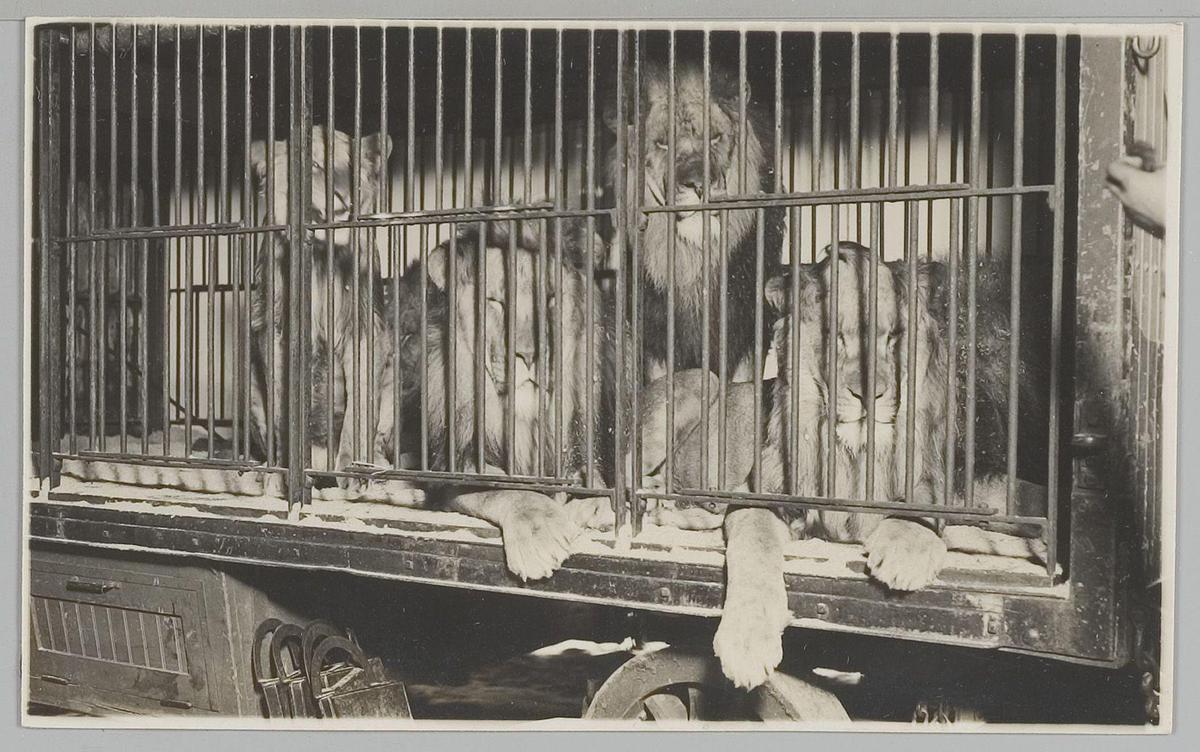 Leeuwen in kooi, Circus Strassburger. Groningen okt....
