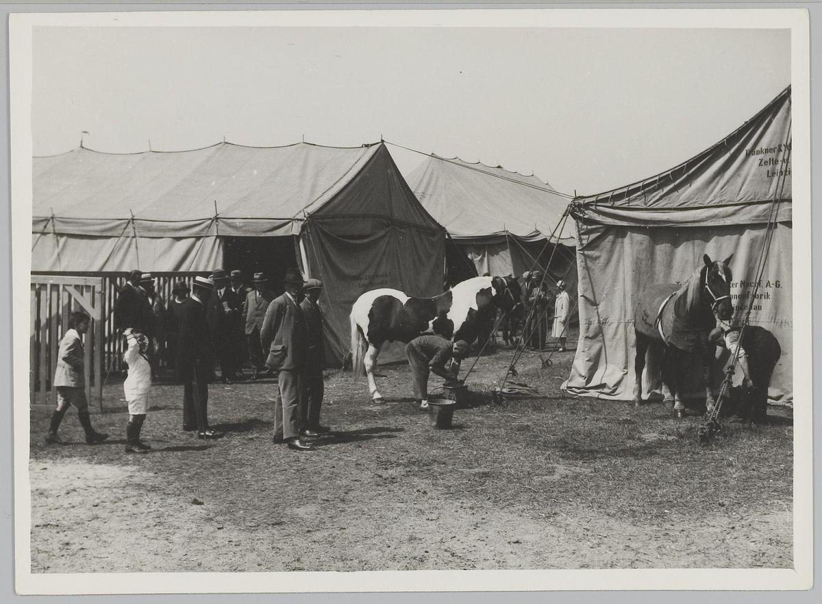 Paardendressuur en tenten van Circus Strassburger. N...