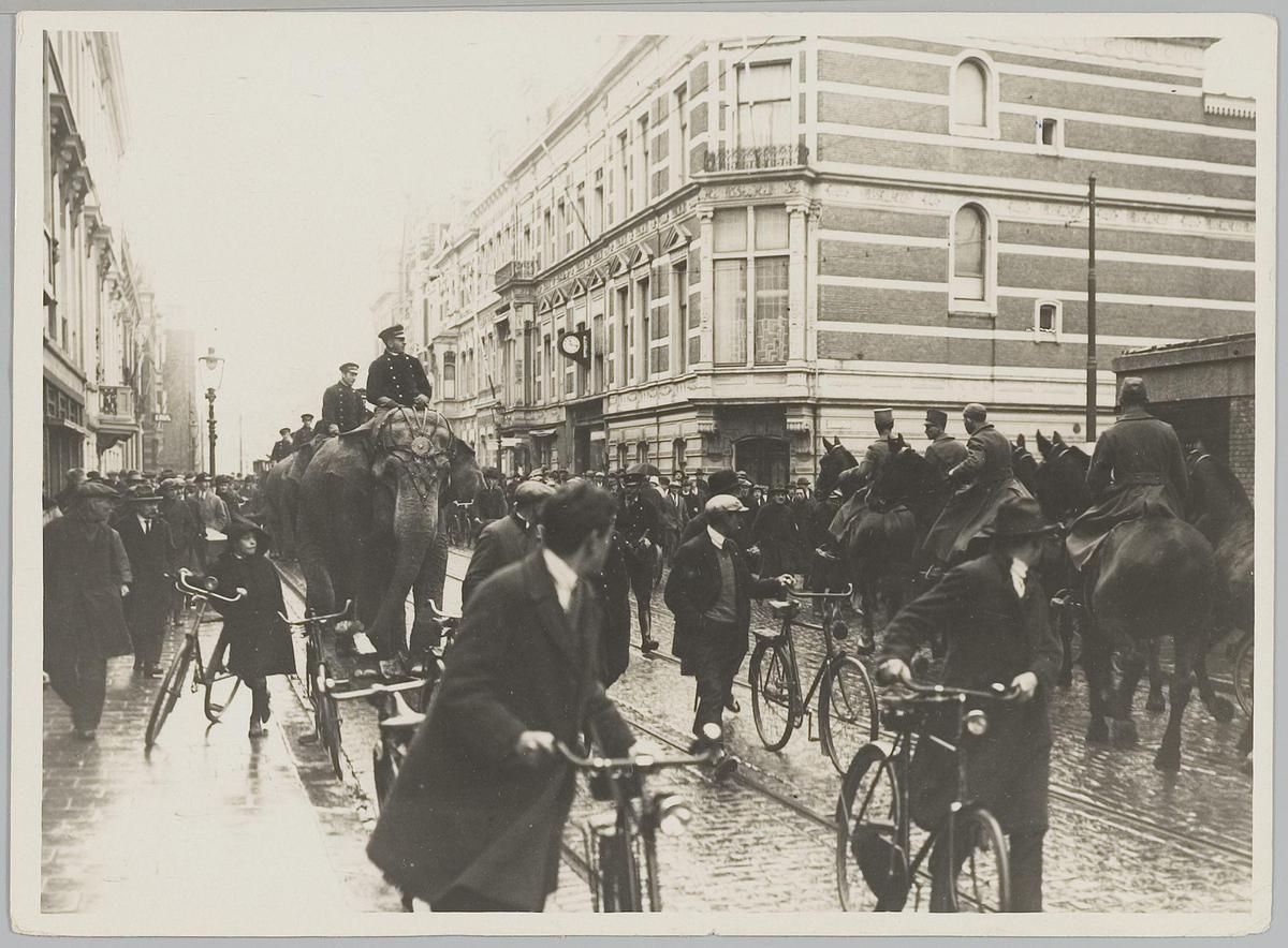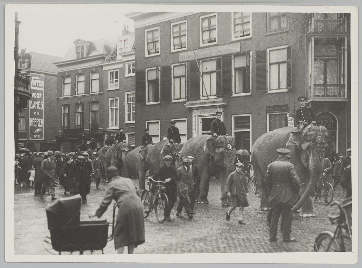 Optocht van olifanten van Circus Strassburger door D...