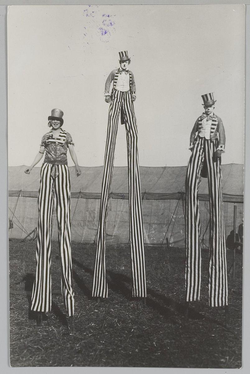 Drie clowns op stelten, Circus Strassburger, 1929