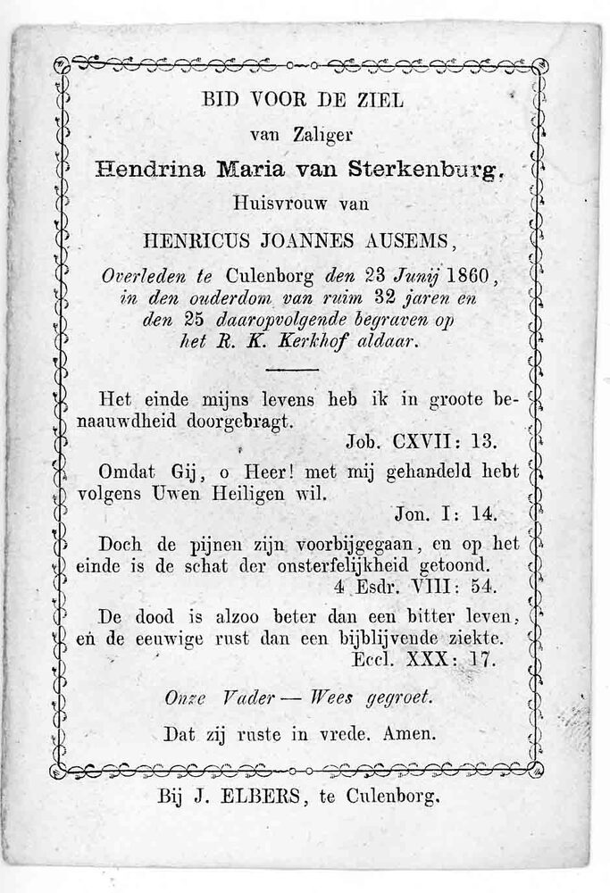 bidprent voor Hendrina Maria van Sterkenburg. Gebore...