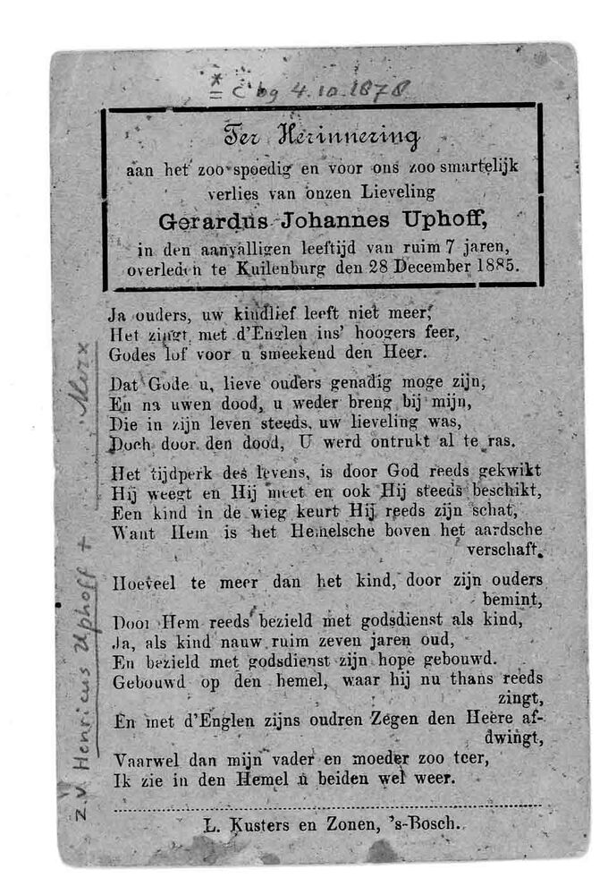 bidprent voor Gerardus Johannes Uphoff. Geboren 04-1...