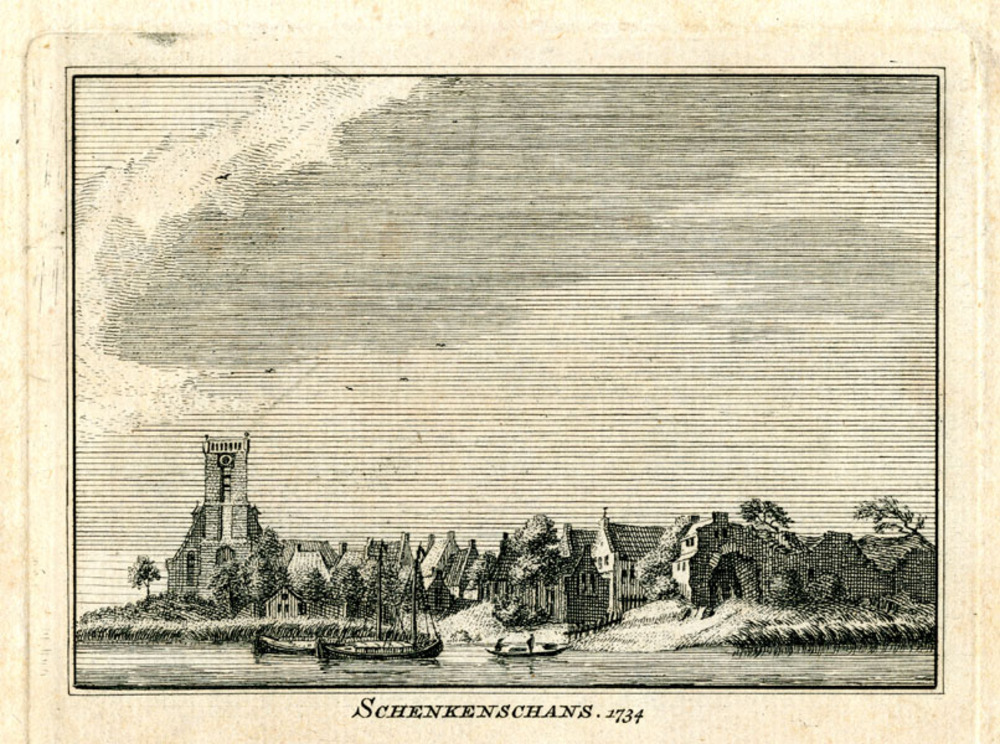 Gravure op papier voorstellende Schenkenschans en ka...