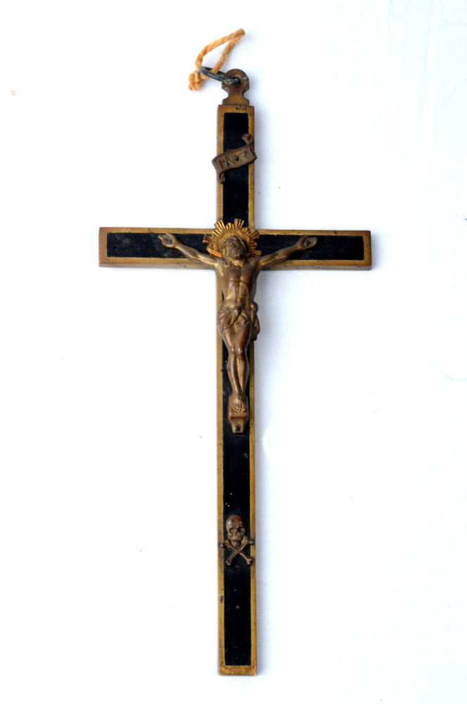 Kruisbeeld van koper en hout. ca. 1900-1960