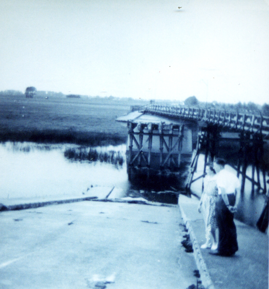 Zwart-wit foto van de brug over de Oude Rijn te Herw...