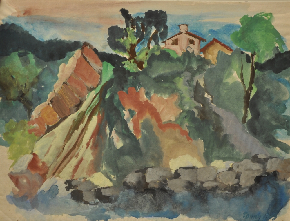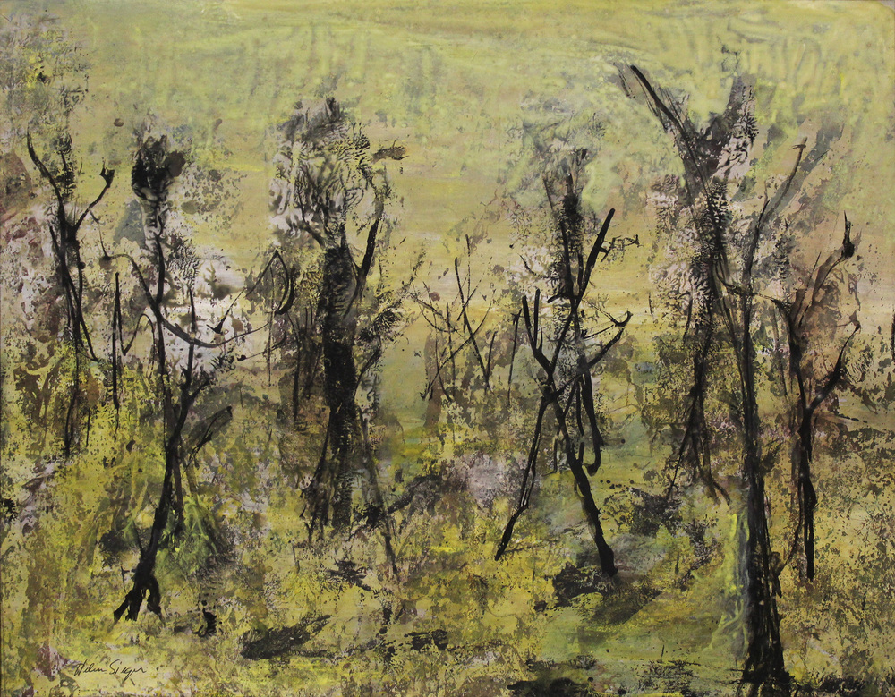 Gouache op papier getiteld 'Burnt forest' door Helen...