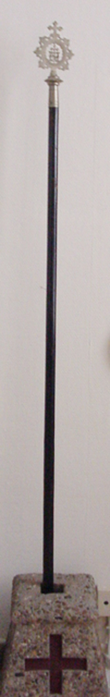 Broedermeesterstok van hout met een sierknop van metaal