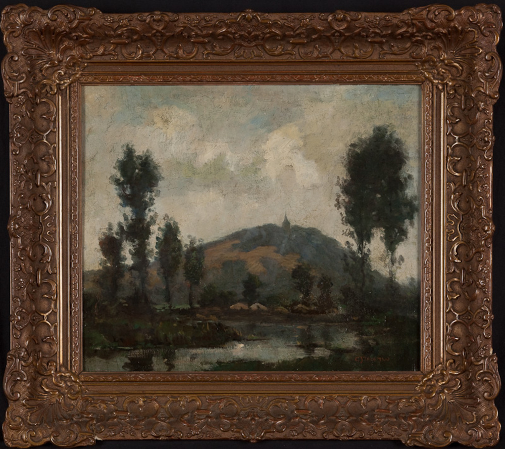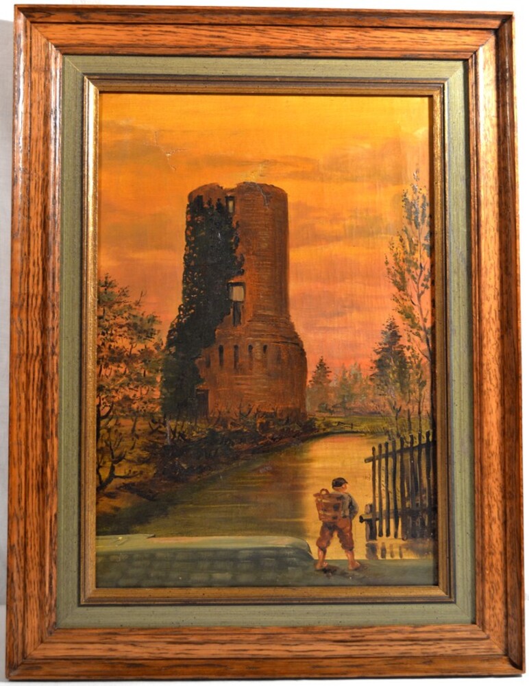 Schilderij olieverf op paneel voorstellende een gezi...