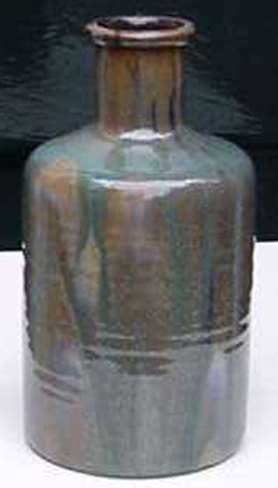 Vaas flesvormig van keramiek en blauwgroen en bruin ...