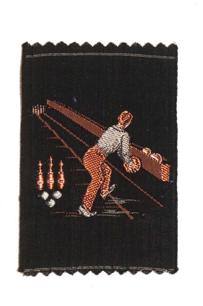 Zijdje 'Kegelen' textiel, uitgegeven door Kiazim-Emi...