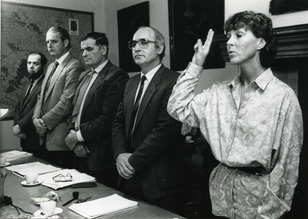 Zwart-wit foto van de installatie van de Heemraad in...
