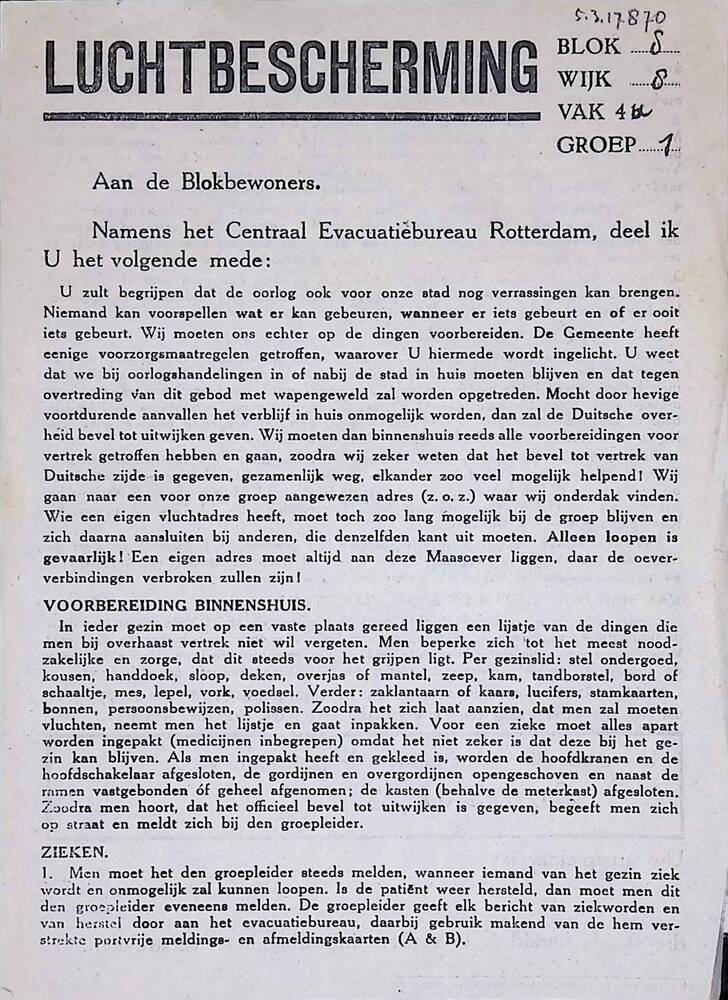 Brief van de Luchtbescherming aan blokbewoners Blok ...