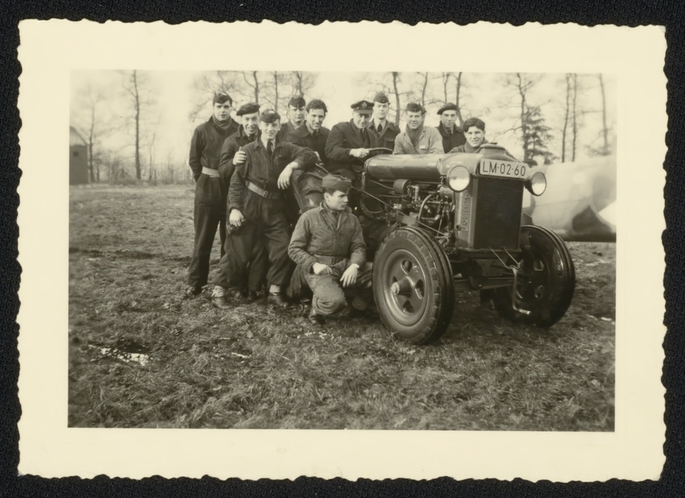 Foto vanBoeing B-17 in R.A.F. kleuren op de grond. T...