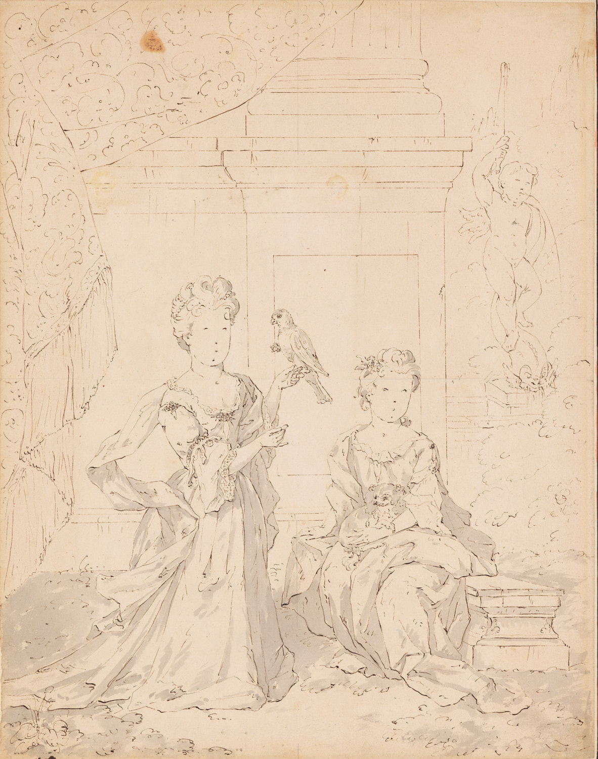Twee ingangen (recto). Schetsjes van ornamenten (ver...