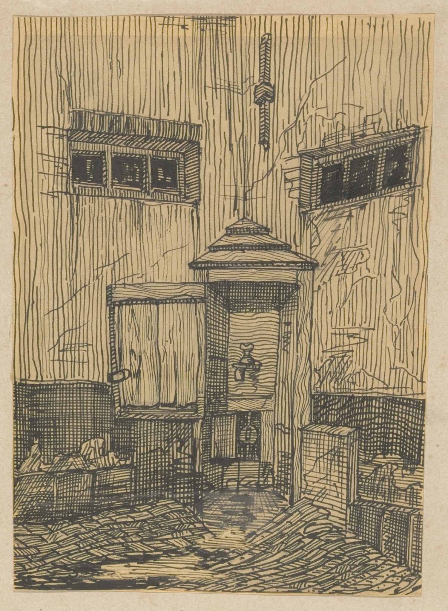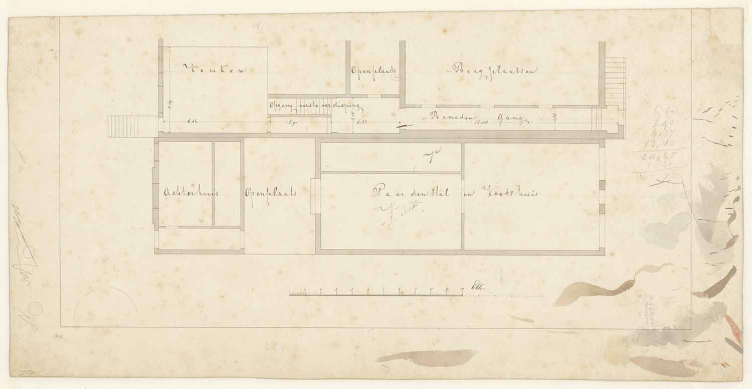 Gevel, ingang en plattegrond (recto). Schetsjes van ...