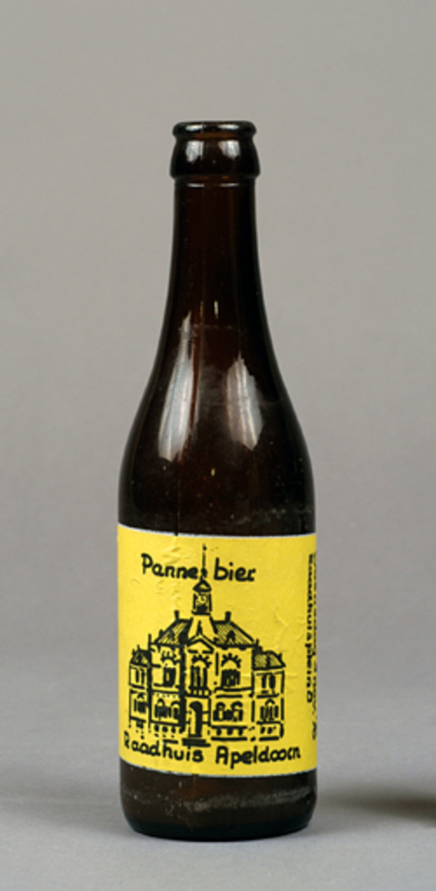 Bierfles met opschrift: 'Pannebier Raadhuis Apeldoor...