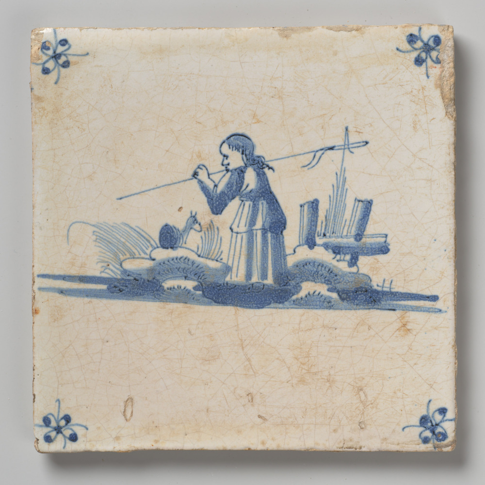 tegel van aardewerk met tinglazuur, voorstellende: h...