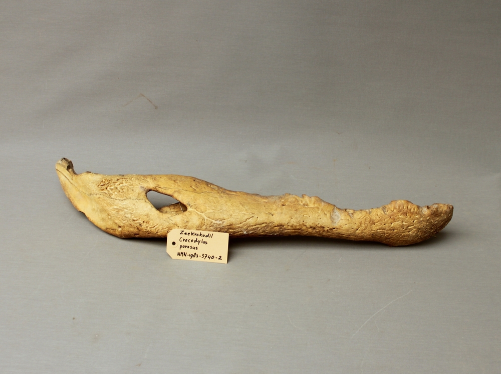 Zeekrokodil; schedel met onderkaak; onderkaak in twe...